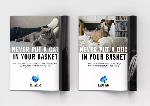 相比之下,新的標識打破這一細分市場的常用手法,采用非常迷人的狗和貓的水彩畫,黑色的耳朵、胡須、鼻子更是奇思妙想的一筆,大寫文字表達出意思嚴肅,整體可愛又與眾不同。